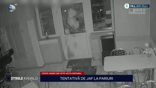Camerele de supraveghere au surprins momentul în care hoțul sparge un geam și reușește să intre în agenție.