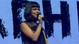 Romanita Iovan a venit imbracata intr-o tinuta punk.