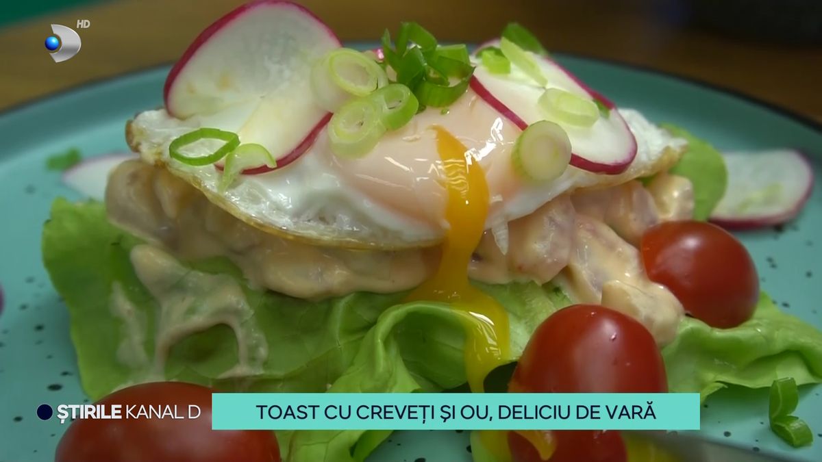 „Aveți poftă să gustați ceva delicios, dar ușor și simplu de făcut? Alina Laufer propune o rețetă în stil mediteranean, care nu este doar rapidă, ci și extrem de gustoasă: toast cu creveți și ou”.