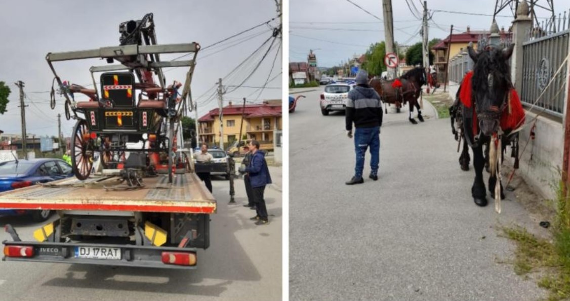 ”Două trăsuri pregătite pentru nuntă se deplasau pe raza municipiului Craiova, într-o zona intens circulată, fără a deține autorizațiile necesare, conducătorii acestora ignorând prevederile legale ce interzic deplasarea vehiculelor cu tracțiune animală în municipii”, se precizează pe pagina de Facebook.