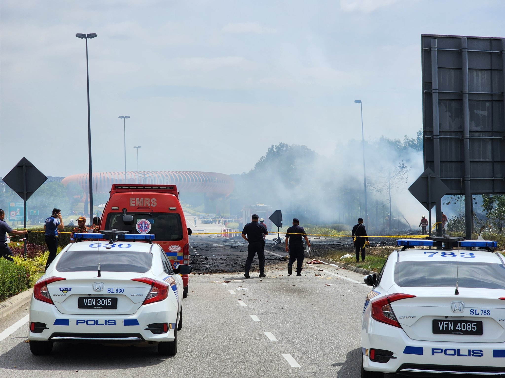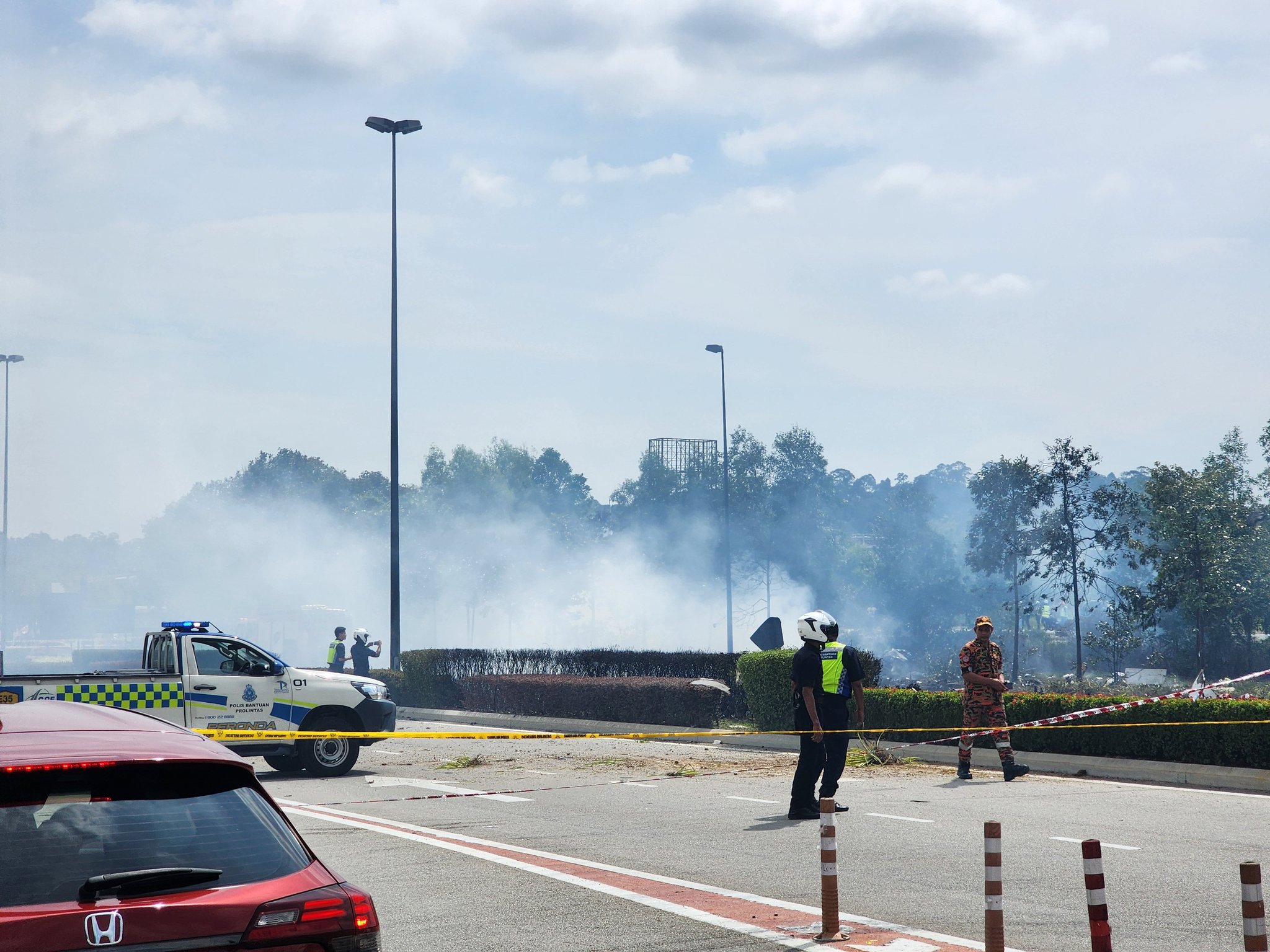 All road to Elmina West are closed. Private jet terhempas. 3 penumpang. Satu penunggang motor jadi mangsa