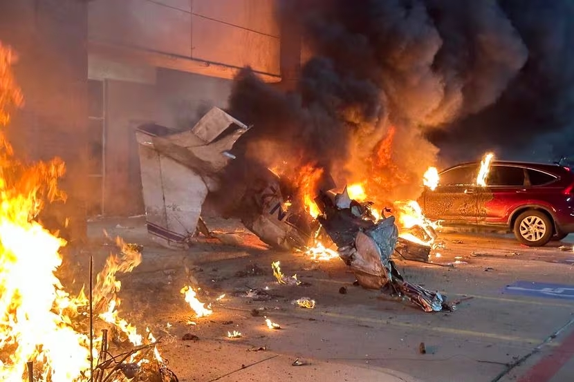 Purtătorul de cuvânt al Plano Fire-Rescue, Daniel Daly, a explicat într-o conferință de presă că o mașină a luat foc după ce a fost lovită de apava avionului.