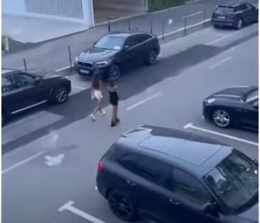 O altă filmare făcută în timpul zilei surprinde momentul în care bărbatul aruncă de la balcon o sticlă care cade pe asfalt, la doar câțiva metri de două tinere ca treceau prin acea zonă.