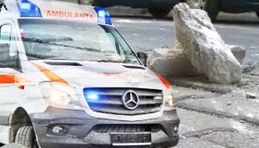 Accident pe bulevard. Tencuiala căzută de pe bloc a lovit un bărbat