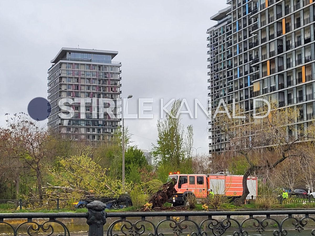 1 din 7 | VIDEO Un copac s-a prăbușit peste o mașină care circula pe Splaiul Unirii din Capitală. Șoferul a fost rănit