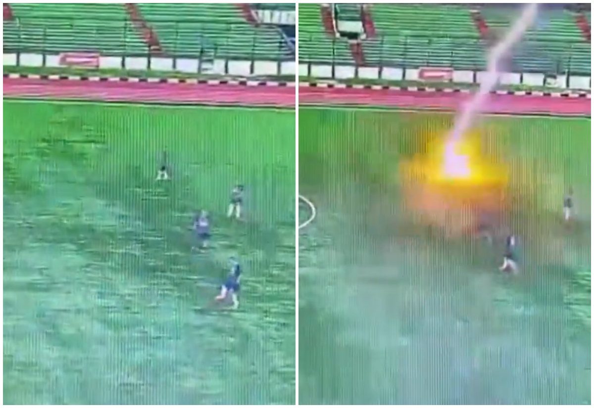 Scene ireale pe un teren de fotbal din Indonezia. Un jucător a fost lovit de un fulger în timp ce alerga după minge și a căzut la pământ. Din nefericire, fotbalistul nu a mai putut fi salvat de medici.