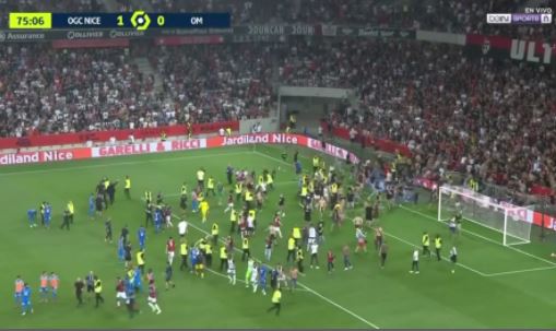 Ambele echipe s-au retras la vestiare, de unde a mai ieşit doar formaţia din Nisa, aşa că meciul a fost decis la masa verde.