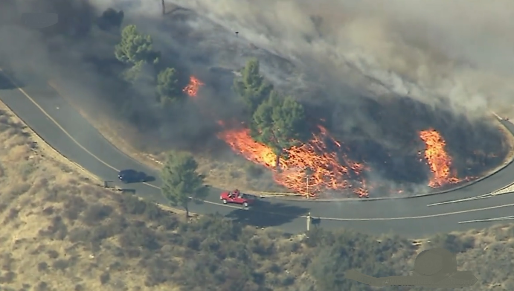 Focul a fost aprins de vânturile fierbinți și uscate din Santa Ana care continuă să sufle în regiune, împingând un nor vast de fum și jar deasupra flăcărilor.