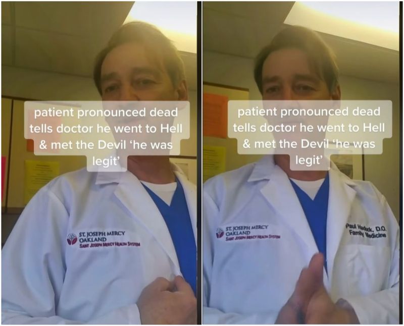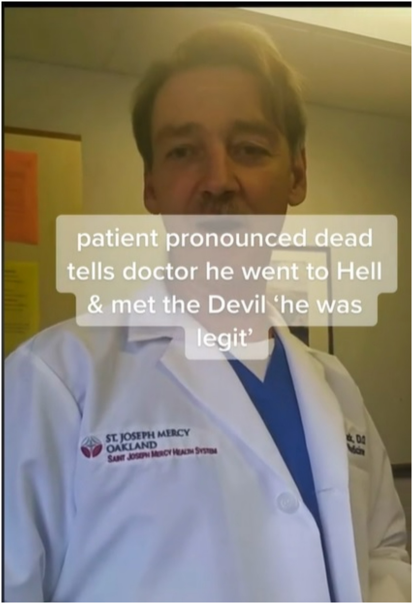 Doctorul și-a amintit că pacientul s-a trezit și a plâns, susținând că a fost tras de o forță în jos, în iad și s-a întâlnit cu diavolul.