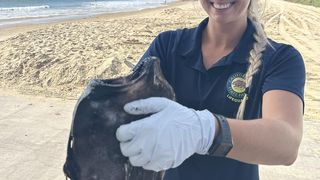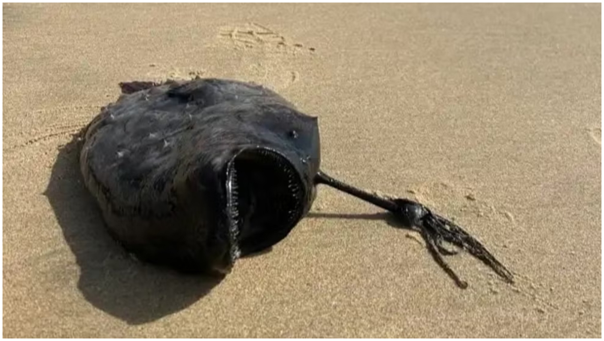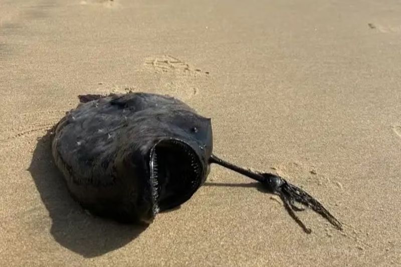 Specimenul cu aspect înfricoșător, găsit de obicei în adâncurile oceanului, a ieșit în mod inexplicabil la suprafața apei și a eșuat pe nisip.