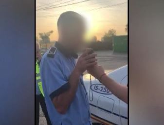 Cand colegii de la Rutiera l-au oprit, agentul abia intrase in tura de dimineata si cu greu se tinea pe picioare, semn ca a avut o noapte de pomina- 0,63 mg/l alcool pur in aerul expirat a aratat etilotestul.