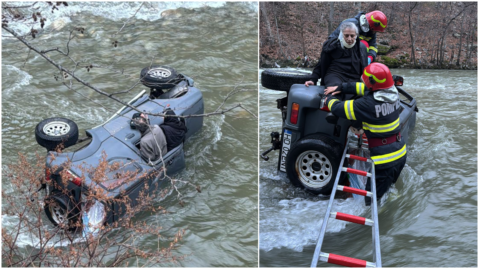 „Echipajele de intervenţie sosite la faţa locului au constatat că cele două persoane erau conştiente, cooperante şi reuşiseră să iasă parţial pe geamul autovehiculului. Colegii noştri au intervenit cu ajutorul mijloacelor din dotare şi au reuşit să le salveze pe cele două persoane care au fost evaluate medical şi urmează să fie transportate la spitalul din Bumbeşti-Jiu”, a precizat ISU.