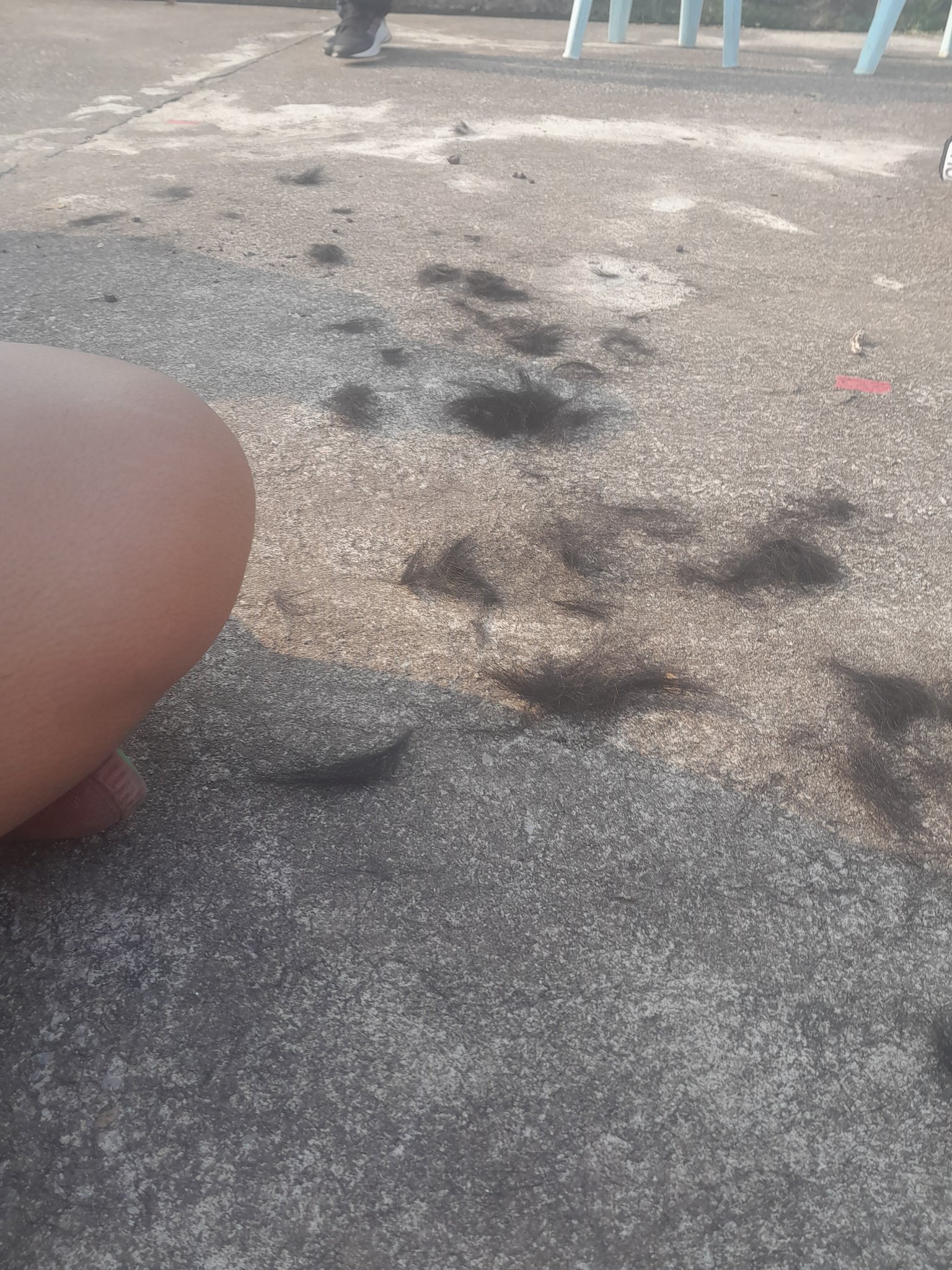 În imaginile de mai jos, postate pe rețelele sociale se vede părul căzut peste tot pe terenul școlii.