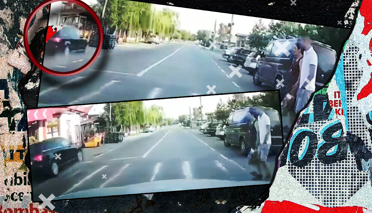 În doar câteva fracțiuni de secundă, îl face praf. Întreagă scenă a fost văzută de un tată și copilul său, care voiau să traverseze șoseaua chiar înainte de venirea vitezomanului.