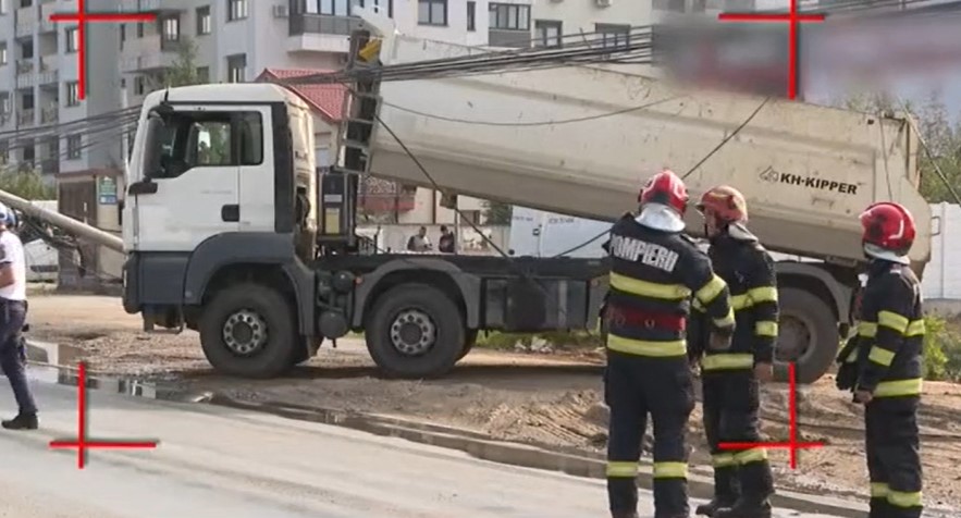 Un șofer de basculantă a lăsat o zonă din București fără rețea electrică, după ce a pornit la drum cu bena ridicată