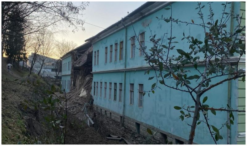 1 din 4 | Peretele unui cămin din Odorheiu Secuiesc s-a prăbușit luni, în jurul orei 16:00.