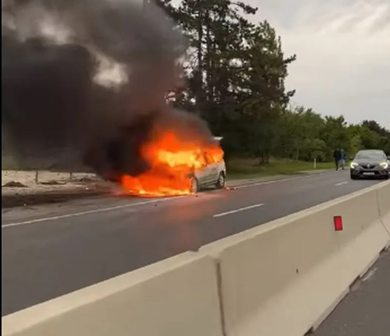 Șoferii din trafic au filmat cum mașina ardea ca o torță