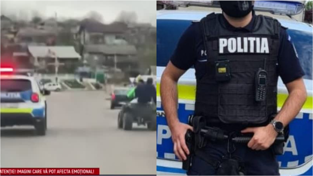 În imagini se observă că unul dintre polițiști a încercat să îi oprească, ba chiar a ieșit parțial din autospecială aflată în urmărire.