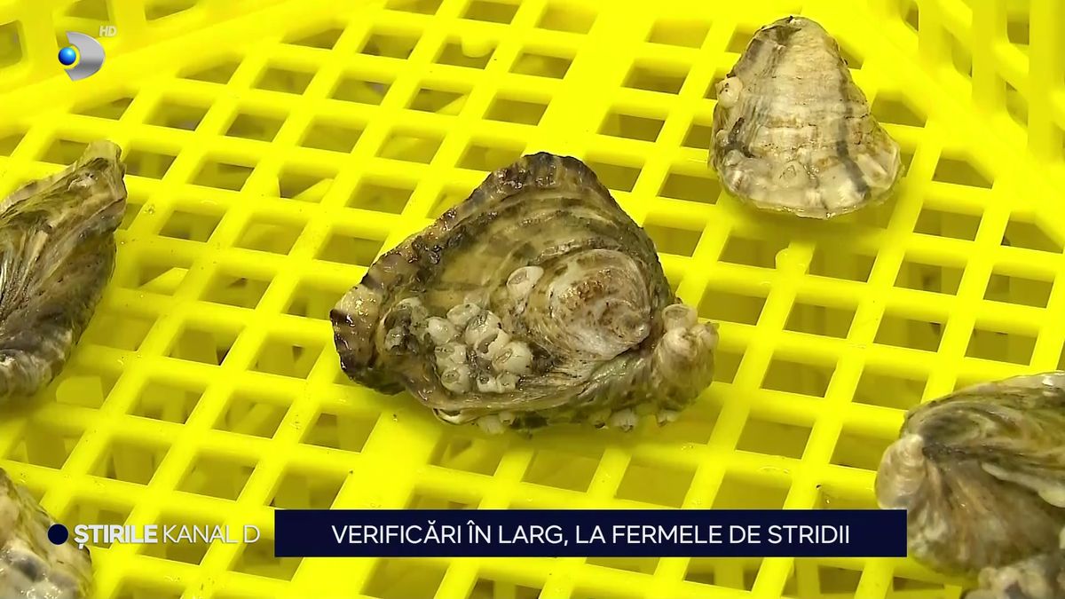 „Primele stridii crescute în fermele din Marea Neagră vor putea fi consumate în doar câteva luni. Până atunci, cercetătorii le verifică periodic. Furtunile de pe mare pot afecta cuștile în care se dezvoltă prețioasele fructe de mare”.