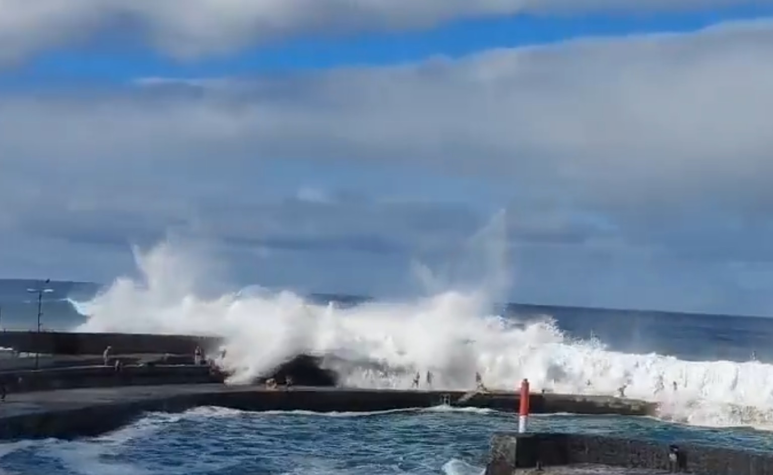 Se mantiene la prealerta en las costas canarias y las autoridades advierten del peligro de acercarse a muelles y espigones a hacerse fotografías