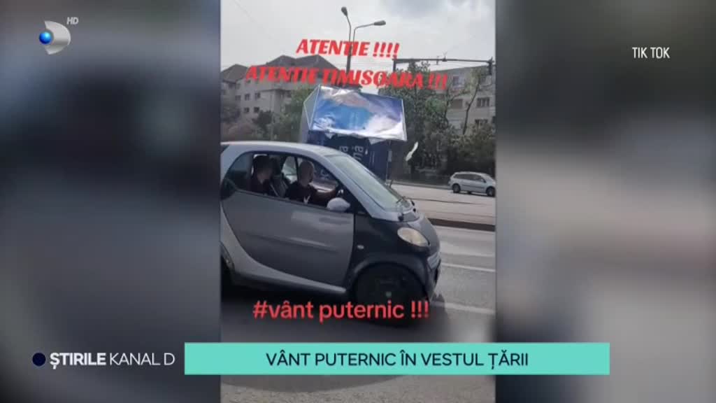 „Este cod galben în vestul și centrul țării, iar vântul puternic a făcut probleme în special la Timișoara. Acolo, rafalele au luat pe sus corturile de campanie ale candidaților pentru primărie și unul dintre ele a ajuns în trafic, peste mașini.