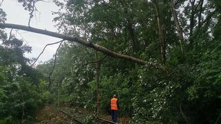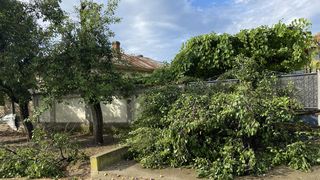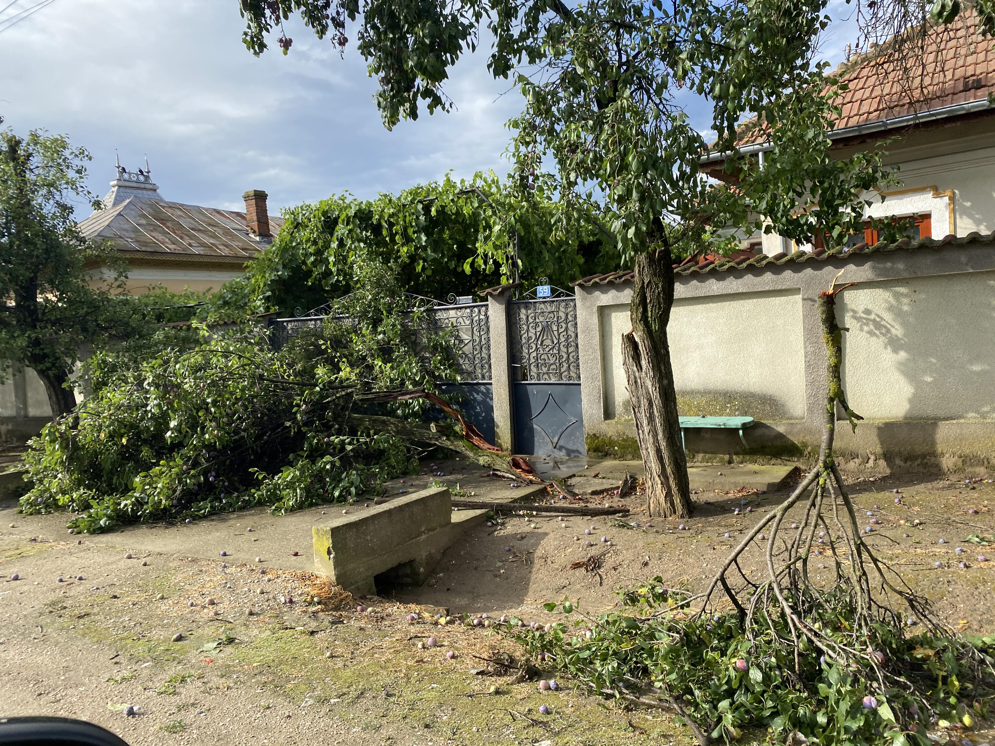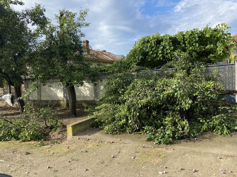 Mai mulți copaci și stâlpi de curent au căzut pe străzi. În câteva zone sunt și acoperișuri căzute.