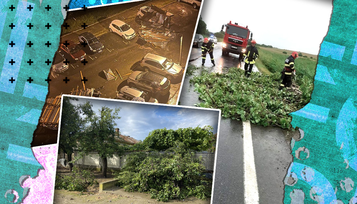 9 din 9 | VIDEO. Vijeliile au făcut prăpăd în mai multe județe din țară. Oameni loviți de acoperișul unui bloc