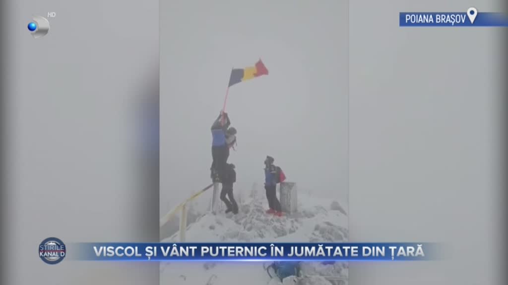 Și în masivul Postăvarul a fost vânt puternic. În plin cod galben de viscol, jandarmii montani s-au chinuit să schimbe tricolorul românesc de la cota 1700.