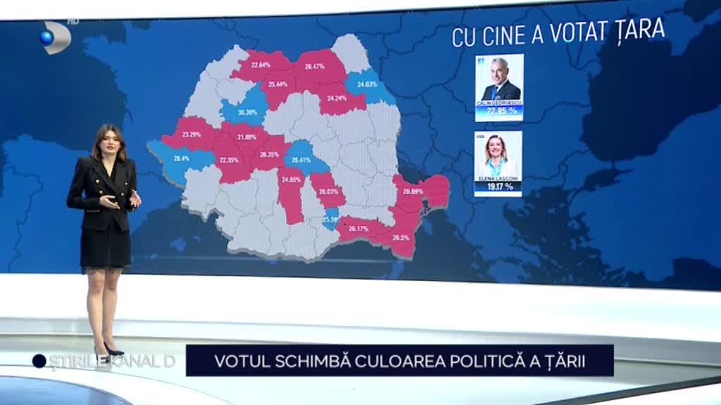„Țara schimbă total culoarea politică. Călin Georgescu, surpriza alegerilor, a ieșit învingător în județele care altădată erau ale liberalilor, asta în timp ce Nicolae Ciucă rămâne cu doar un județ din gloria de altădată a partidului, iar Elena Lasconi, cu cinci județe câștigate, ajunge direct în finala pentru prezidențiale”, a spus Cosmin Cernat.
