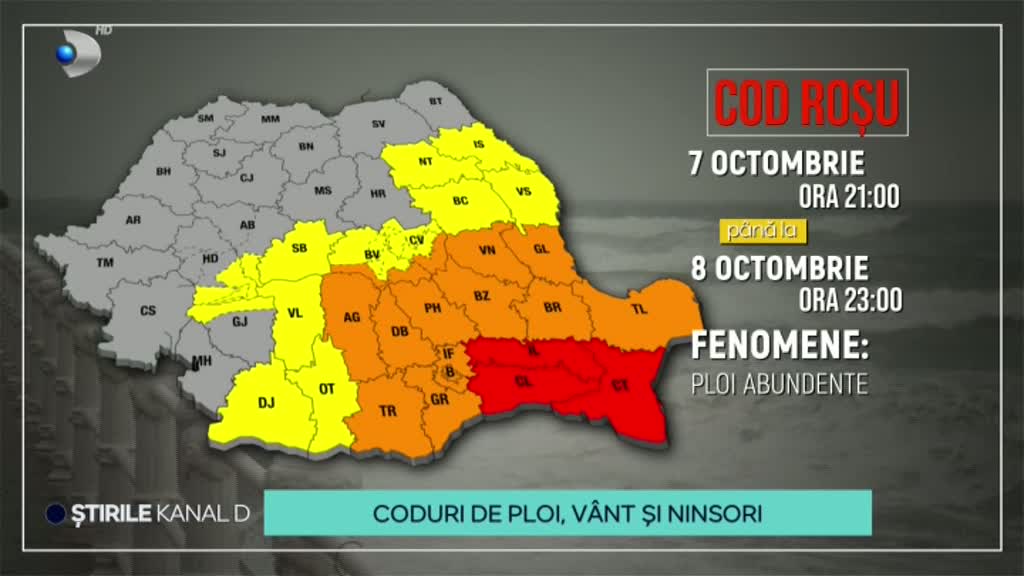 Toate aceste coduri meteo sunt valabile până în seara zilei de 8 octombrie, la ora 23:00.