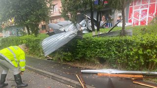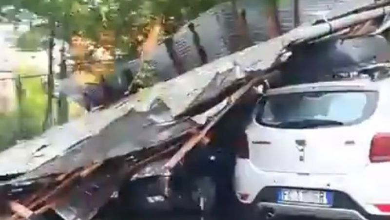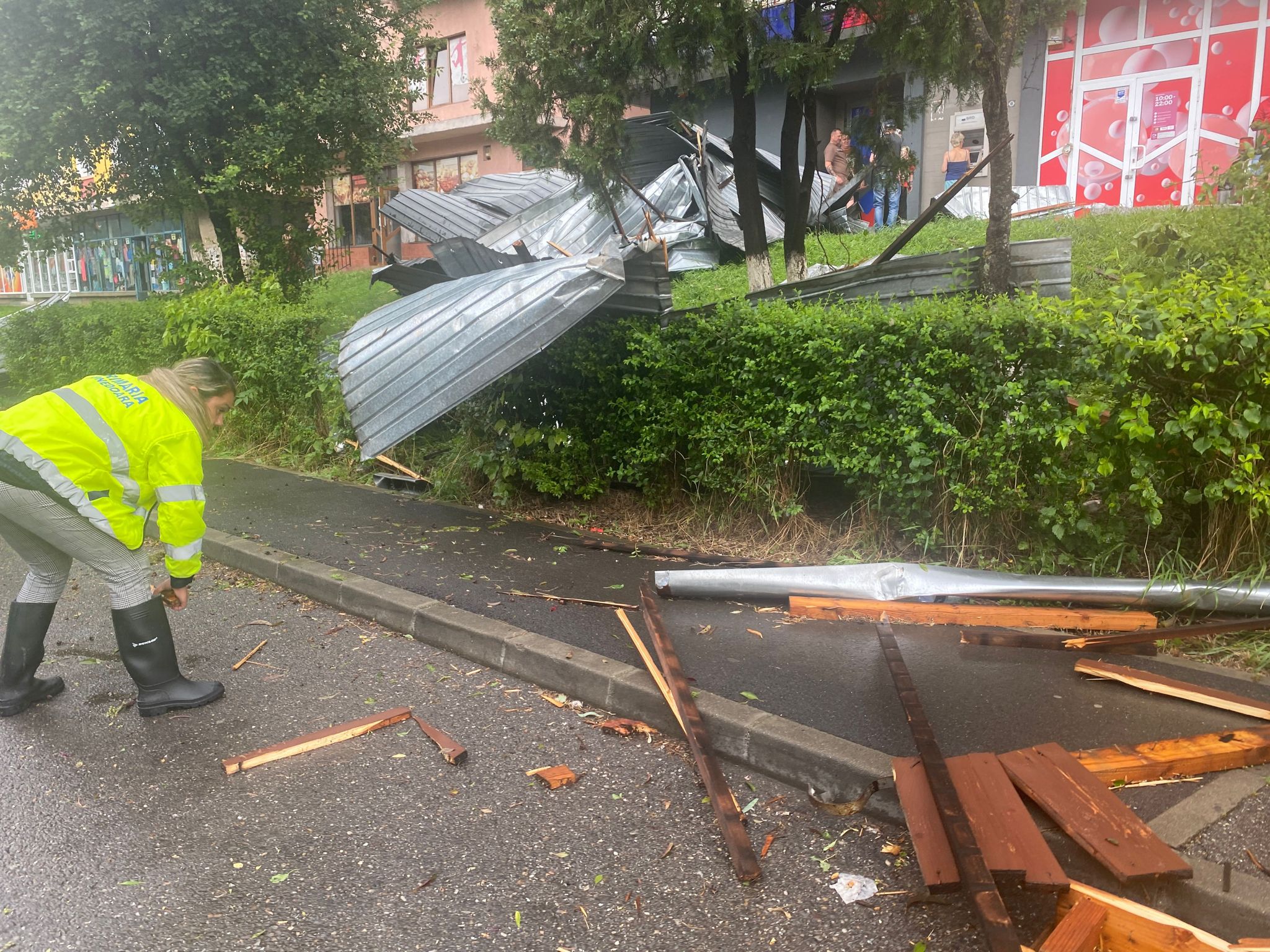 Un acoperiș a fost luat pe sus și a fost aruncat în clădirea de lângă. Ploaia torențială a inundat mai multe străzi, iar oamenii s-au trezit cu apa la picioare.