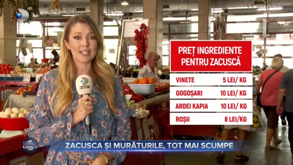 „În piețe, kilogramul de vinete se vinde cu cinci lei, gogoșarii costă zece lei, la fel și ardeiul capia, roșiile se vând cu opt lei pe kilogram, iar pentru a pregăti zacuscă gospodinele mai au nevoie și de ulei, sare, piper, frunze de dafin sau bulion, astfel bugetul trebuie să fie unul destul de generos”, a transmis Mădălina Bichir, reporter Kanal D.