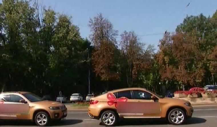 Mesajul inscriptionat pe masini le promite studentelor ca, odata angajate, taxa la facultate nu mai e o povara!