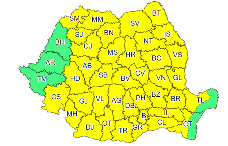 Instabilitatea atmosferică va fi temporar accentuată în toate regiunile. Se vor semnala averse ce vor avea și caracter torențial, descărcări electrice, intensificări ale vântului, vijelii și căderi de grindină. În intervale scurte de timp sau prin acumulare, cantitățile de apă vor depăși 15...25 l/mp, iar pe arii restrânse 35...50 l/mp.