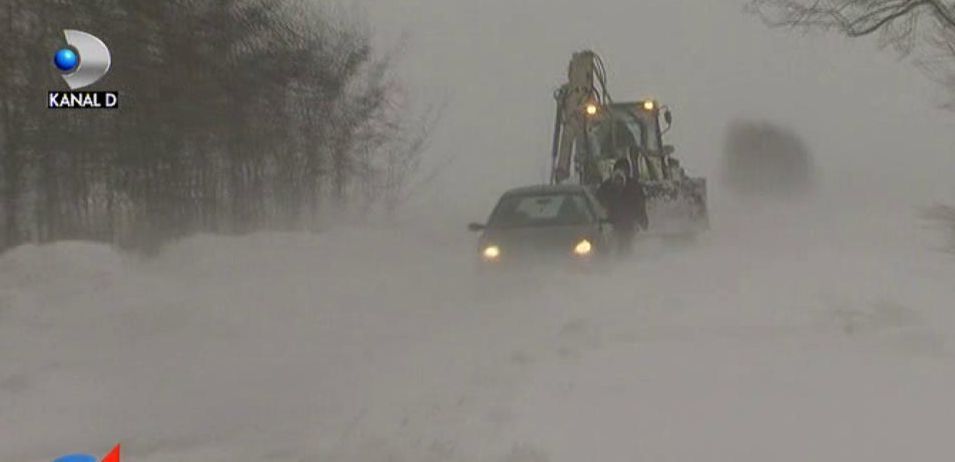 Prima ninsoare, in Vrancea, a blocat o comuna si trei sate. La miezul noptii, excavatoarele au croit drum prin nameti pentru o femeie bolnava.
