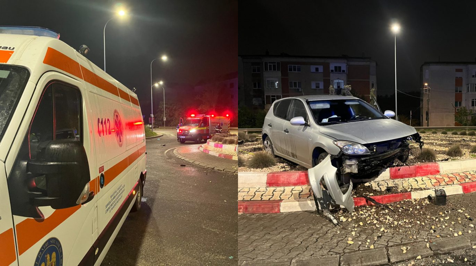 1 din 3 | Viteza a băgat trei tineri în spital! Mașina condusă de șoferița de 21 de ani s-a înfipt într-un sens giratoriu din Tulcea