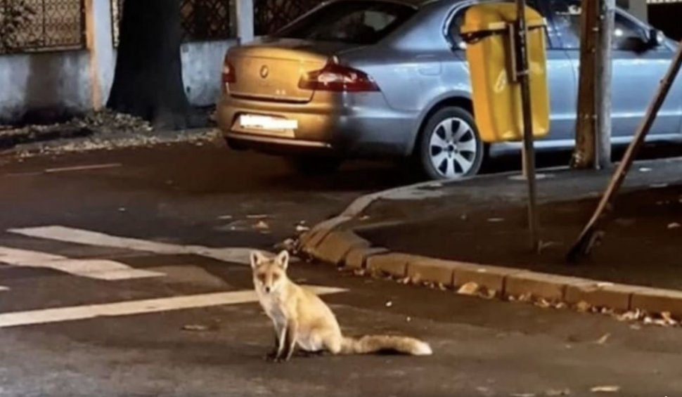 Un bucureștean a reușit să fotografieze vulpea în timp ce se plimba în mijlocul străzii printre mașini.