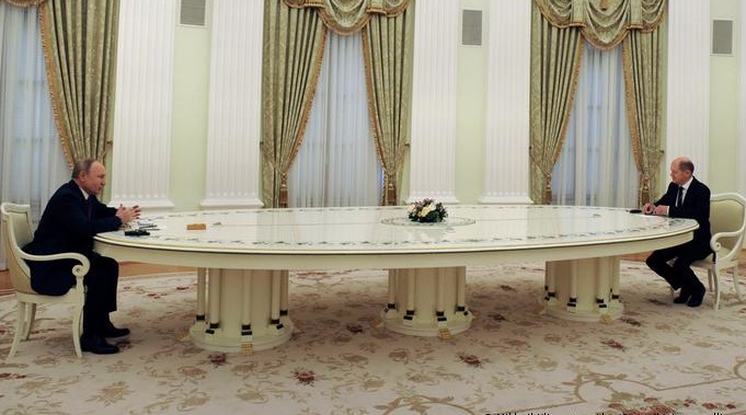 Preşedintele rus Vladimir Putin l-a aşezat marţi pe cancelarul german Olaf Scholz la capătul unei mese lungi de şase metri la Kremlin pentru convorbirile despre criza ucraineană, aceeaşi poziţie pe care a ocupat-o şi preşedintele francez Emmanuel Macron săptămâna trecută, relatează dpa.
