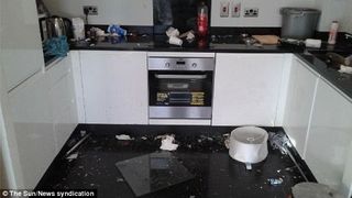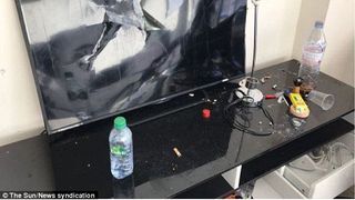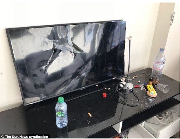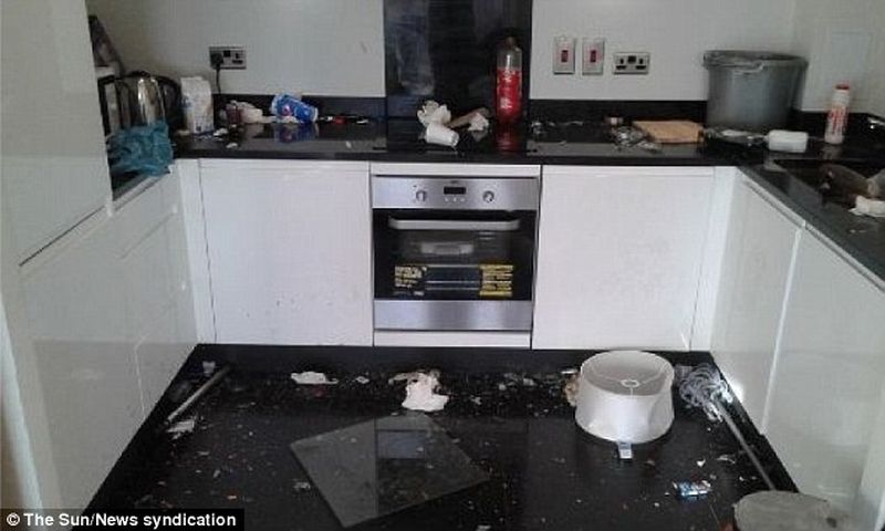 Apartamentul a fost inchiriat cu aproximativ 500 de lei pe noapte, si a fost lasat intr-o stare teribila: mobila lovita, voma intinsa pe pereti si gunoaie peste tot, scrie DailyMail.