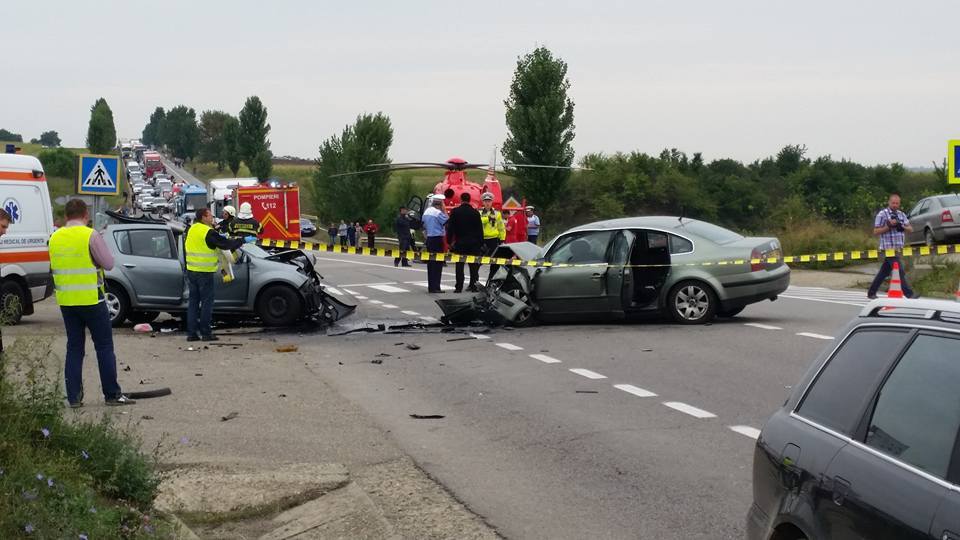 Din primele informatii, numarul ranitilor la acest moment se ridica la cinci. Una dintre victime este incarcerata, iar pentru scoaterea ei intervin pompierii cu echipajul de la descarcerare.