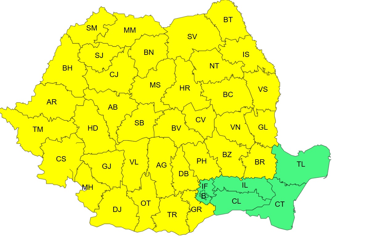 În același timp, în cursul zilei de duminică este valabil în mare parte din țară un cod galben de intensificări ale vântului, viscol, strat de zăpadă. Atenționarea este valabilă până la ora 23:00.