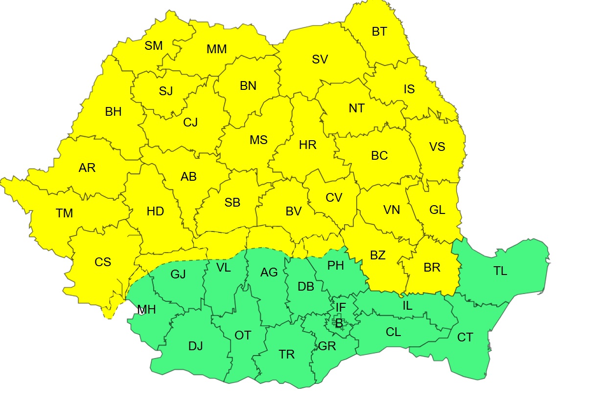 „În Maramureș, Crișana, Banat, Transilvania, Moldova, nord-estul Munteniei, precum și la munte vor fi perioade în care vor fi intensificări ale vântului și vijelii, cu viteze de 50...70