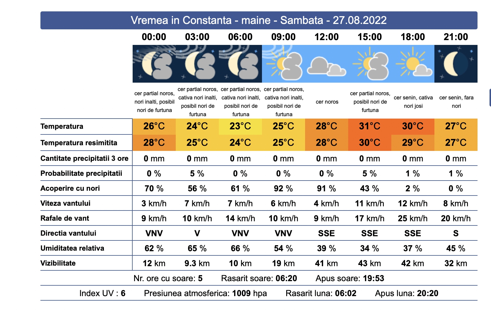 În Constanța, regimul termic va fi unul oscilant. Potrivit meteorologilor, pe litoral vor mai fi episoade în care pot apărea averse şi intensificări temporare ale vântului, iar valorile termice vor fi ușor mai scăzute.