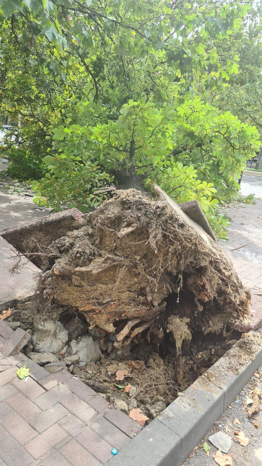 Copacul a fost smuls din rădăcini din cauza vremii nefavorabile. Imaginile surprinse arată că pomul s-a prăbușit în apropierea unei intersecții unde se afla și bărbatul rănit.