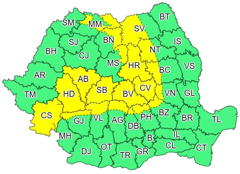 Avertizarea ANM de tip COD GALBEN