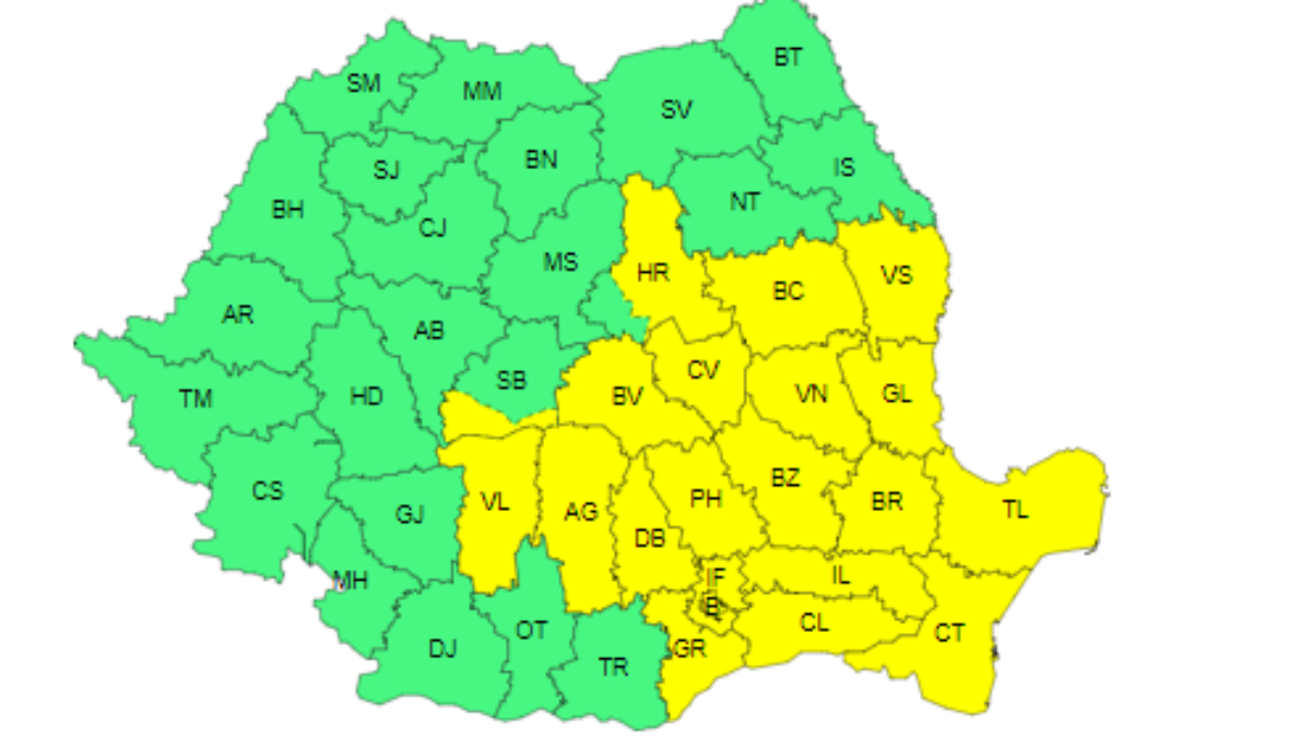 În intervalul menționat, în Dobrogea, cea mai mare parte a Munteniei, jumătatea de sud a Moldovei, estul și sud-estul Transilvaniei și nord-estul Olteniei vor fi perioade cu averse torențiale, local însoțite de descărcări electrice și intensificări de scurtă durată ale vântului. În intervale scurte de timp sau prin acumulare cantitățile de apă vor fi de 20...25 l/mp și izolat de peste 40...50 l/mp", se arată în informarea Administrației Naționale de Meteorologie.