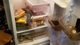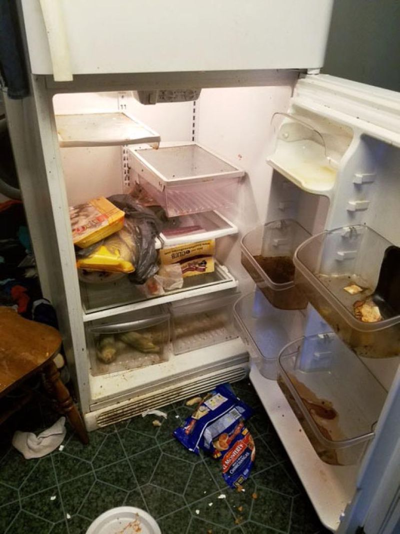 Frigiderul arata ingrozitor, cu resturi de mancare si un lichid negru care era in fiecare sertar.
