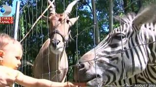 Mai intai, a fost doborat la pamant cu o singura lovitura de copita, cand animalul, proaspat adus la zoo, a zbughit-o din tarc, dar, barbatul nici nu stia ce-avea sa-l astepte.