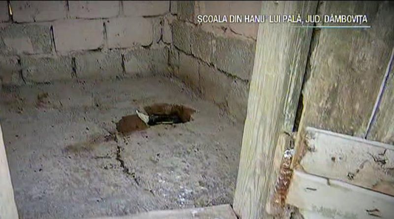 De parca nu ar fi indeajuns crapaturile si dezastrul din interior, priviti cum arata wc-urile din curte scolii.