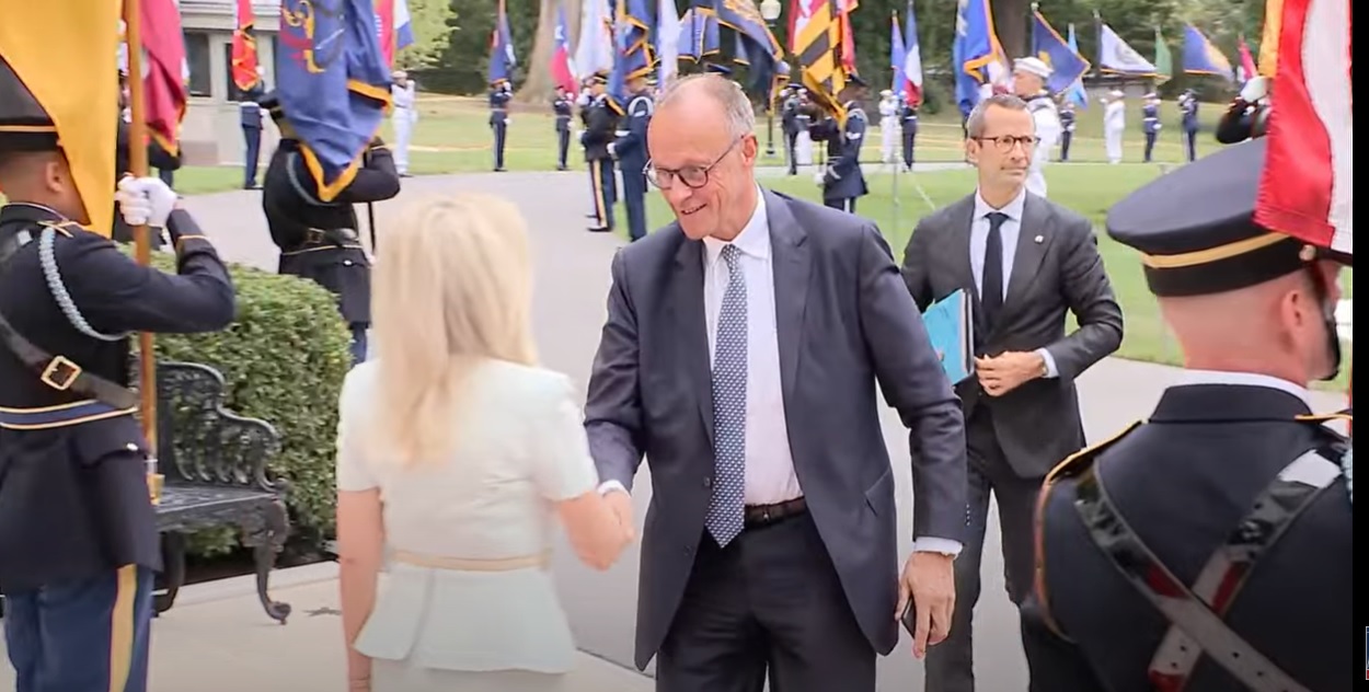Au sosit la întâlnirea cu Trump și cancelarul Germaniei, Friedrick Merz, urmat de președintele Franței, Emmanuel Macron: